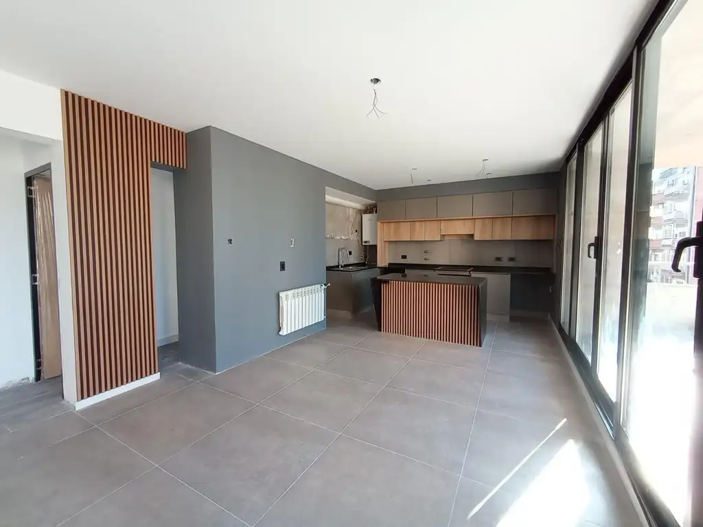 Unidades a estrenar de 3 dormitorios de 111 m2 exclusivos mas 15 m2 de balcón exclusivo con parrillero. Tiene un gran ambiente principal - living comedor con cocina integrada con isla, amplio y luminoso. La cocina totalmente equipada y amueblada con bajo mesada y alacenas. Mesada y zócalo en granito. Grifería de primera marca y calidad. Bacha de acero inoxidable. Dos baños completos uno de ellos en suite Pisos porcelanatos en todo el departamento, Habitaciones con estufa marca escabe tiro balanceado, placar empotrado con puestas de madera y terminaciones de aluminio anonizado e interiores completos. Baño completo con griferias y sanitarios de primera calidad. Las aberturas son Módena doble vidrio termo acústicas de muy buena calidad. Definiciones de calidad en general con terminaciones en yeso. Puerta de ingreso blindada