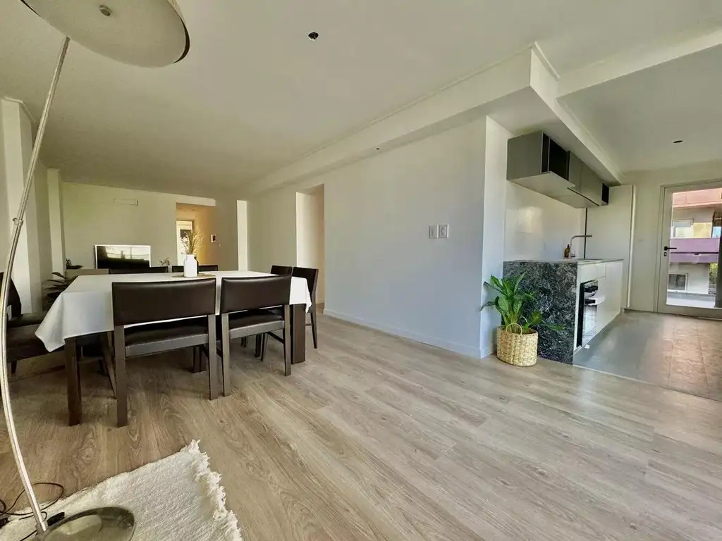 Terminaciones: Pisos de ingenieria en living comedor y dormitorios, porcelanatos en cocina y balcón, mesada de marmol negra brasil, cocina revestida en porcelanatos, anafe separado y horno empotrado, campana extractor, alacenas y bajo mesada en mdf, aberturas DVH (doble vidrio).