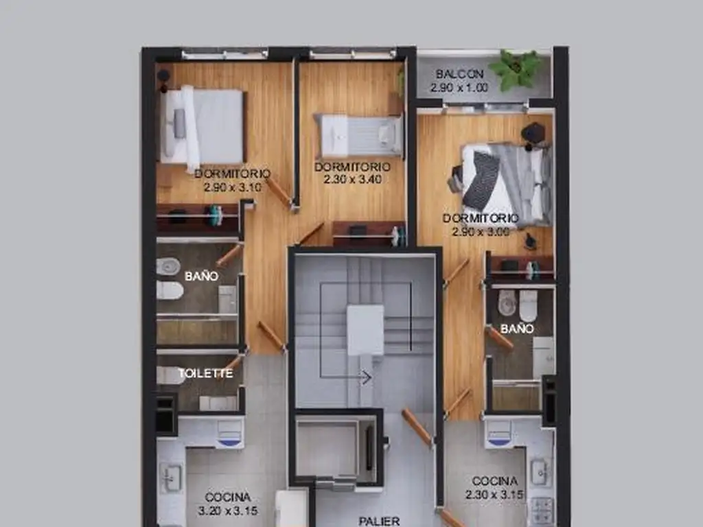 Unidades semipisos, piso 1o con patios exclusivos de un dormitorio y dos, piso 6o y 7o exclusivos de 3 dormitorios, piso 8o Exclusivo de 2 dormitorios con balcón aterrazado y parrilla.
