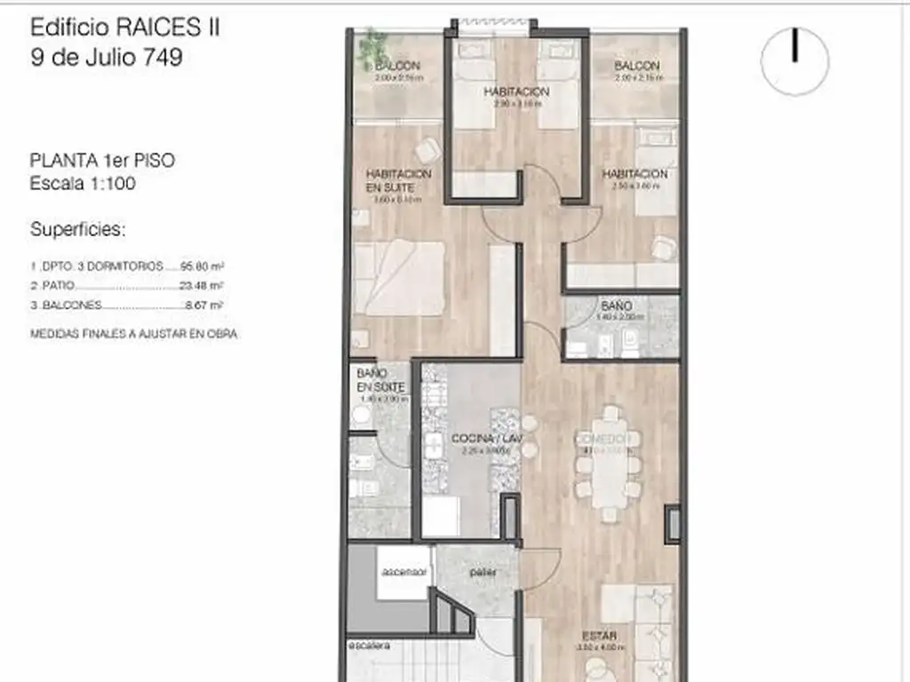 Todas las medidas enunciadas son meramente orientativas, las medidas exactas serán las que se expresen en el respectivo título de propiedad de cada inmueble.