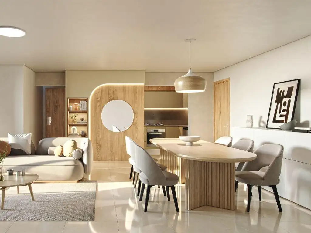 Cocina semi integrada, living comedor amplio, con salida a un gran balcón aterrazado, con parrillero.