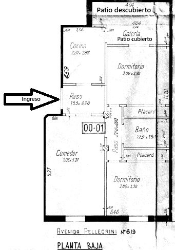 Departamento dos dormitorios con patio sobre calle Pellegrini 600.