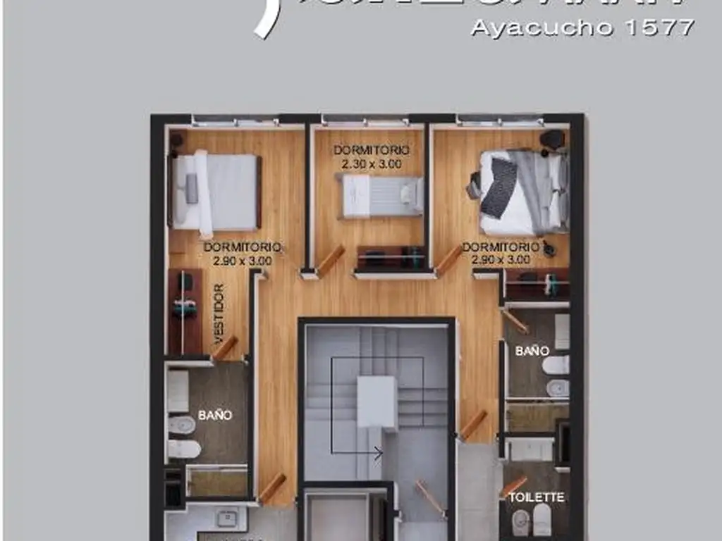 Unidades semipisos, piso 1o con patios exclusivos de un dormitorio y dos, piso 6o y 7o exclusivos de 3 dormitorios, piso 8o Exclusivo de 2 dormitorios con balcón aterrazado y parrilla.
