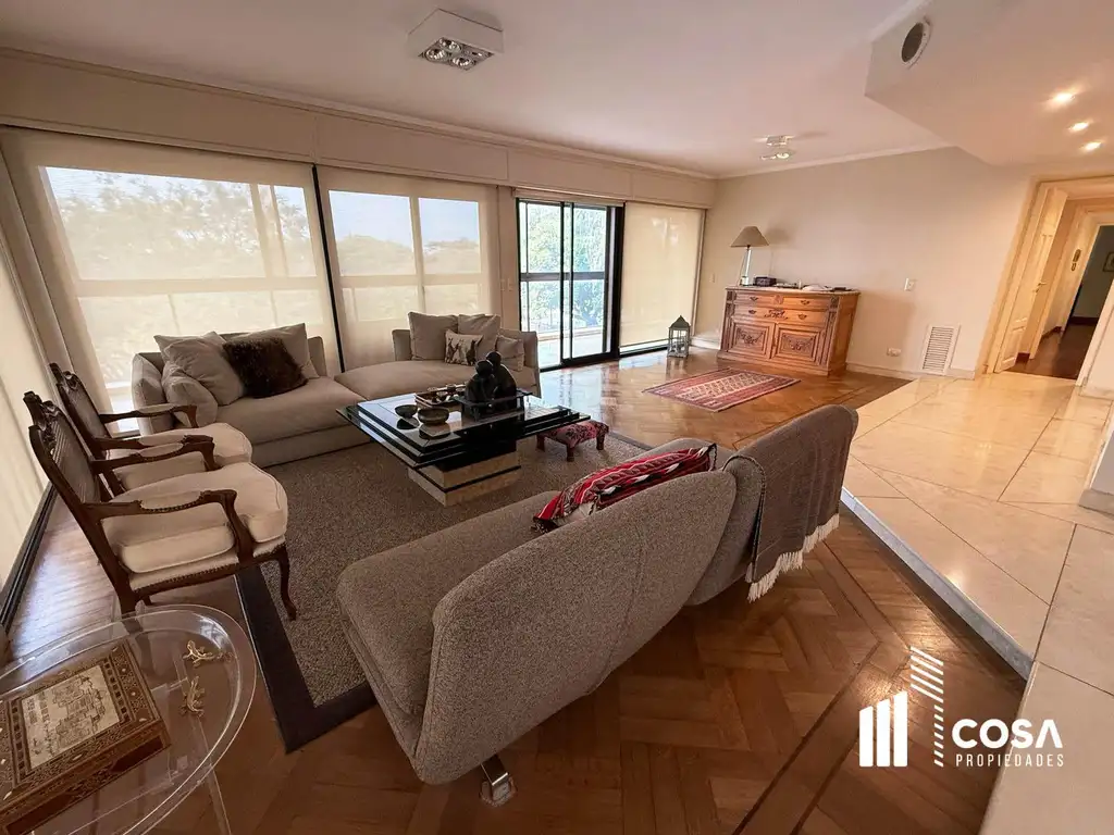 Doble ingreso. Ingreso principal a amplio living comedor con salida a balcón corrido (frente), toilette de recepción, segundo ingreso por cocina, completamente equipada con isla, alacenas de guardado y bajo mesada, comedor diario para ocho comensales con salida a balcón Norte, lavadero independiente con placares de guardado, bacha, y baño con ducha. Pasillo a íntimos, baño completo con antebaño, dormitorio principal en suite con vestidor y salida a balcón independiente cerrado, segundo y tercer dormitorio ambos con placares y salida a balcón, cuarto dormitorio con doble ingreso, placard y ventanal al contrafrente.