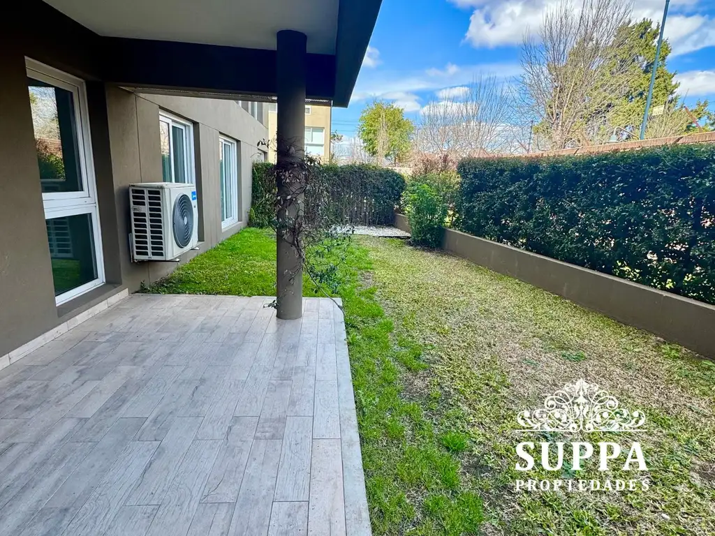HERMOSO DEPARTAMENTO 3 AMB PLUS, con jardín y galeria aterrazada, parrilla, cocina, living comedor muy amplio, dormitorio principal en suite con vestidor, baño completo y posibilidad de tercer dormitorio, doble cochera subterránea y baulera. El departamento cuenta con la posibilidad de un tercer dormitorio o mantener el concepto de 3 amb con un gran living comedor dado que tiene el metraje correspondiente a 4 amb.