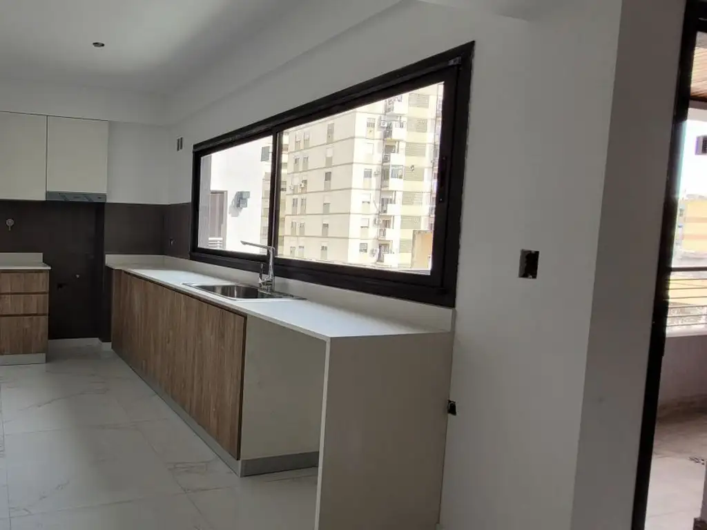 Departamento a estrenar de 2 ambientes amplio y luminoso lateral. Se ingresa al living-comedor de 6.60 x 3.90 mts, con salida a patio de 17 m2 con conexión para lavarropas, cocina semi-integrada de 2.50 x 3.10 mts. Hall de distribución que nos dirige hacia 1dormitorio y 1 toilette, el dormitorio en suite con placard empotrado con ventilación naturalal patiode3.10 x 2.80 mts, . Todos los ambientes cuentan con la preinstalaciónde aire acondicionado.El departamento cuenta con cerradura biométrica, porcelanato en todos los ambientes y servicio de cámarade seguridad en el edificio, cuenta con sum con quincho con parrilla, toilette de recepcióny solárium.