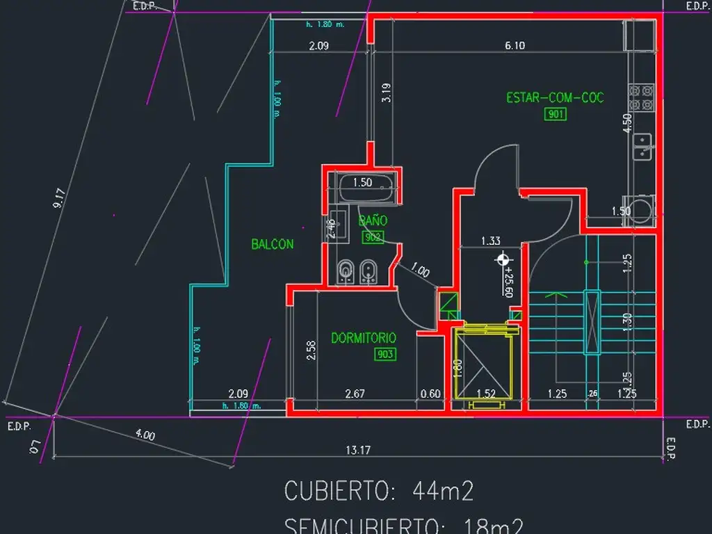 Amplia terraza descubierta de 18 mts2 con parrilla y barandas de blindex semicubierta con circulacion desde cada ambiente