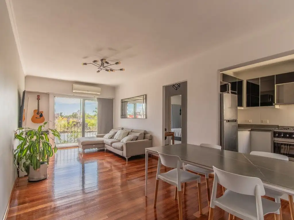 Tanto el living como el dormitorio principal cuentan con salida directa al balcón, un espacio clave que conecta con el exterior y aporta aún más luz y ventilación.