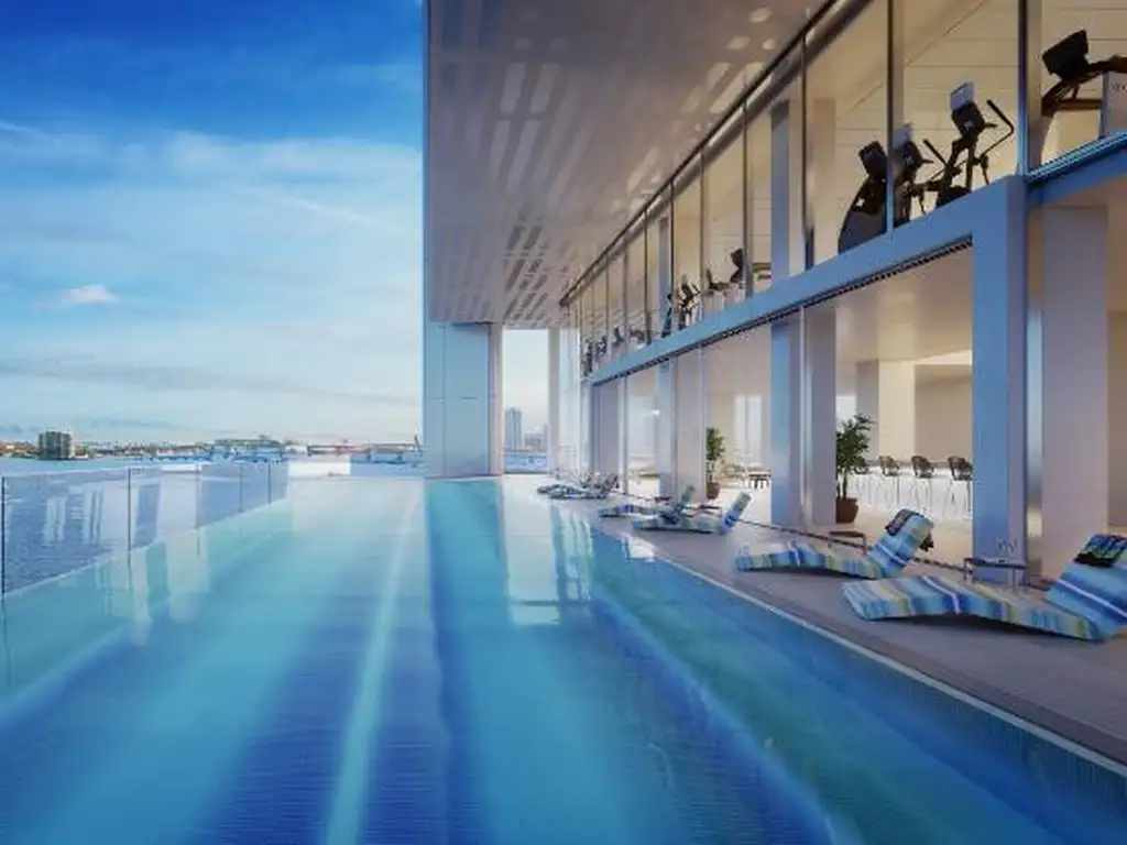 Comedor privado para residentes y sala de fiestas Sala de proyección privada. Gimnasio de 1,700 pies cuadrados con vistas de 180 de la bahía Estudio de yoga privado Sala de entrenamiento privada Vestuario para hombres y mujeres Amplio spa con sauna y salas de vapor para hombres y mujeres, y salas privadas de tratamiento de masajes con duchas
