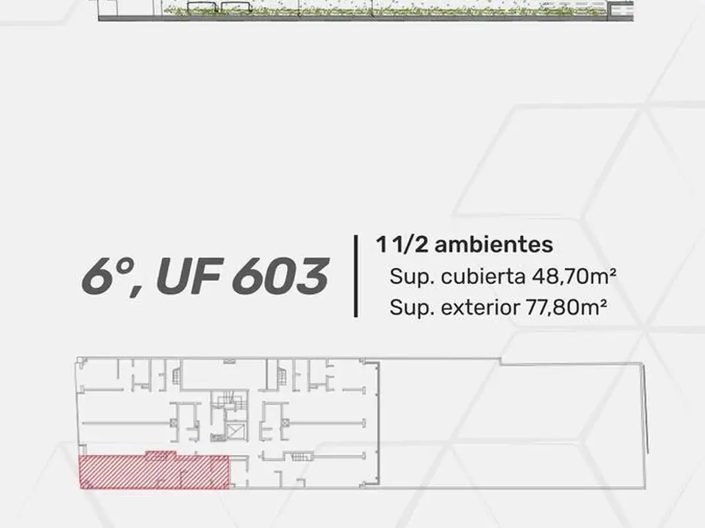 La misma está compuesta por living comedor con cocina integrada y baño completo. Posee terraza propia de 77 m2 aproximados.