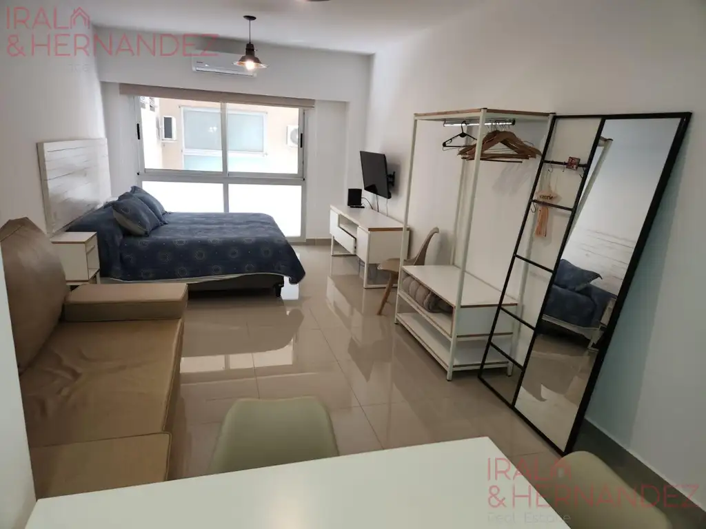 La unidad monoambiente cuenta con excelente calidad, con pisos de porcelanato.
