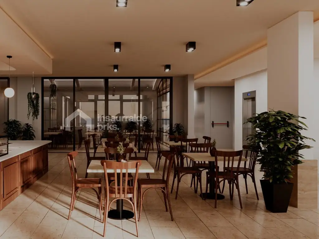 El edificio contará con amenities pensados para el disfrute y la practicidad, como un bar y restaurant en planta baja, piscina, espacio de coworking para reuniones y trabajo, y áreas comunes cuidadosamente diseñadas.