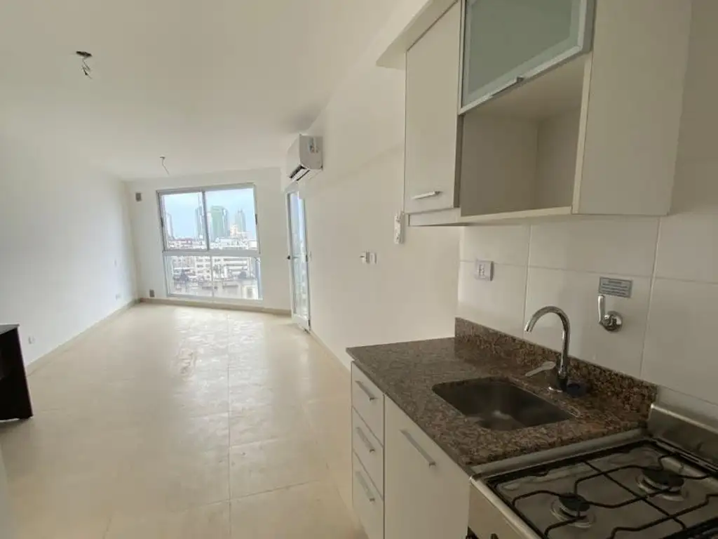 1 ambiente - apto profesional o vivienda - al contrafrente - 3,66x10,5 balcón, baño completo y piso de cerámica, kitchinette con mueble bajo y alacena, mesada en granito con bacha de acero inoxidable y cocina de 4 hornallas c/horno. 1 split frío/calor instalado con circuito independiente.