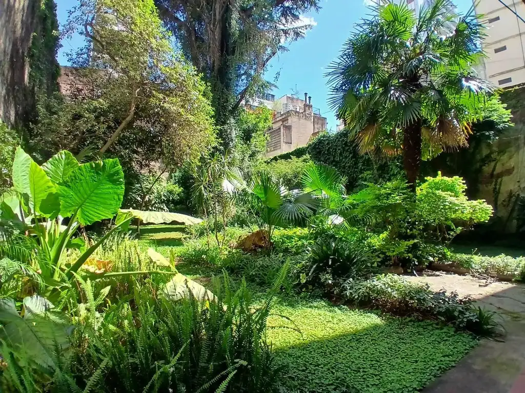 Lo más destacado es su vista única: el departamento cuenta con dos ventanas que dan al patio común del edificio, un espacio lleno de vegetación frondosa, con árboles añosos que aportan una sensación de tranquilidad incomparable, algo difícil de encontrar en pleno centro porteño.
