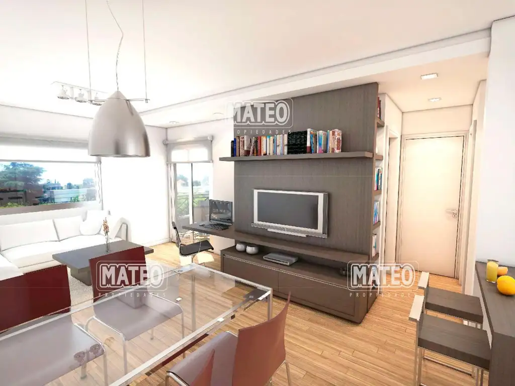 Amplio living comedor. Cocina con desayunador. Balcón con parrilla. Dormitorio. Baño completo.