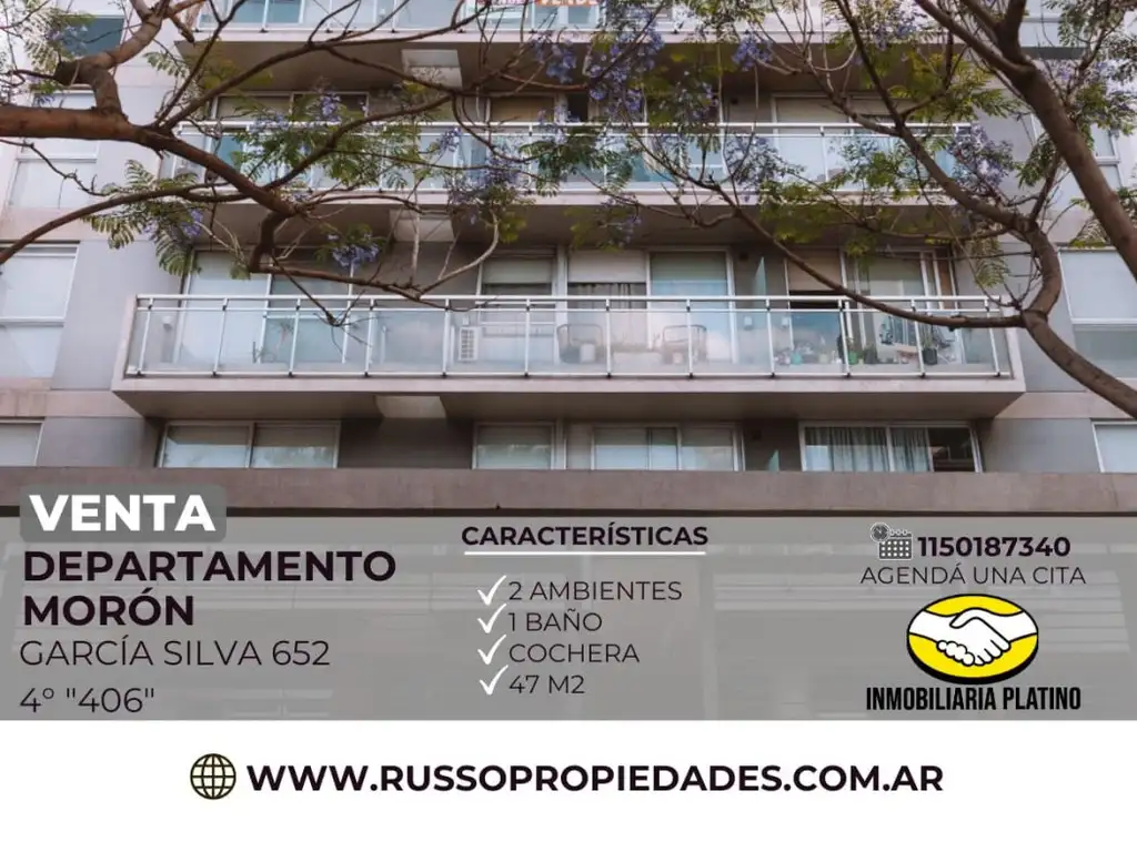 Es un departamento de 2 ambientes con cochera al contrafrente.