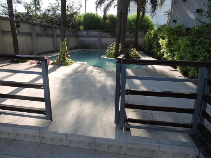 En planta baja posee una piscina con solárium para los dueños de los deptos.