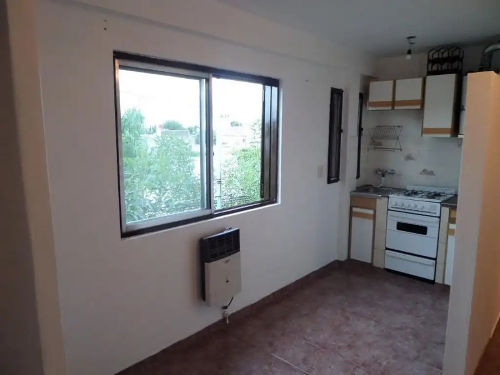 Dormitorio con placard embutido, cocina semi integrada al comedor, con estufa.
