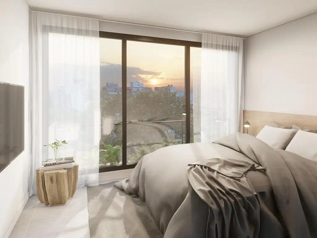 La unidad contará con un cómodo living comedor con cocina integrada, equipada con muebles bajo mesada y alacena, mesada con bacha de acero inoxidable y grifería monocomando. Desde este ambiente se accederá a un balcón corrido que brindará luz y ventilación.