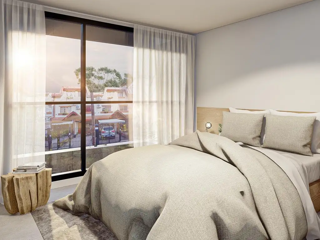 Cada departamento contará con cocina integrada al estar-comedor, equipada con muebles bajo mesada y alacena en melamina, mesada de granito gris mara (o similar), bacha de acero inoxidable y grifería monocomando. Desde el área social se accederá a un amplio balcón con espacios verdes incorporados. El dormitorio dispondrá de placard integral tipo americano y el baño será completo, con artefactos sanitarios y grifería de primeras marcas. Además, se dejará prevista la instalación para aire acondicionado en el dormitorio y el living-comedor, y habrá espacio para lavarropas.