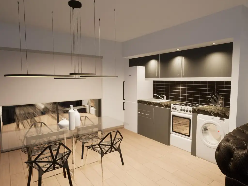 Se accede a la unidad a través de un amplio living comedor con cocina integrada, equipada con muebles completos. Desde este ambiente se proyecta la salida al balcón, lo que brinda una excelente iluminación natural. La propiedad cuenta además con un dormitorio y un baño completo.