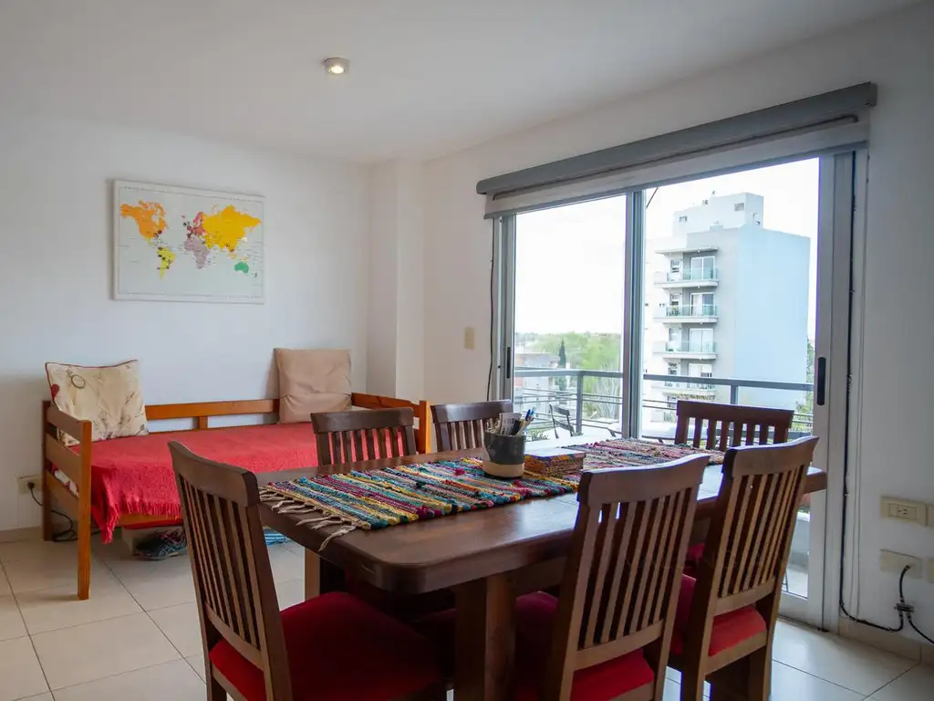 La cocina completamente equipada con el artefacto y extractor de aire cuenta con mobiliario bajo mesada, alacenas en altura y escobero, también ofrece conexión para lavarropas y el termotanque. Un detalle importantísimo es que cuenta con ventilación natural.