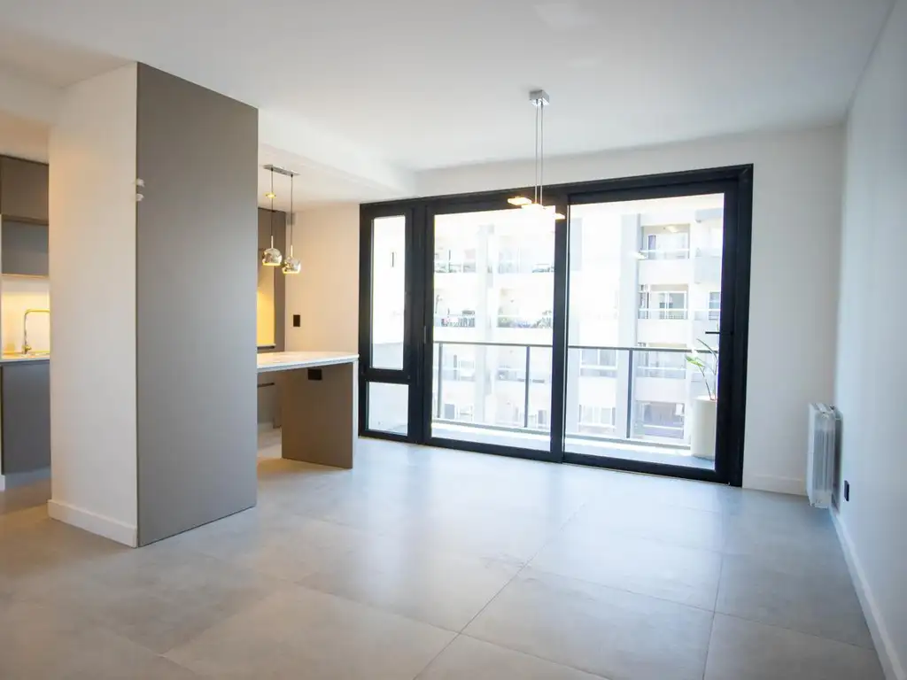 Ingresamos por la sala de estar-comedor, donde nos recibe una vista panorámica con salida a balcón y en su costado la cocina independiente con muebles de melamina de alta gama, mesada de cocina silestone con muebles de guardado en alacena y bajo mesada. Continuamos por el pasillo que nos lleva al baño principal, el lavadero y los dormitorios, uno con frente de placar y una mastersuite orientada al frente. Las griferías serán marca FV y los sanitarios marca Ferrum, línea Veneto.