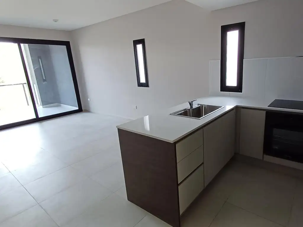 Con un diseño inteligente, este departamento ofrece un moderno concepto de living-comedor integrado con una cocina equipada con mesada desayunadora, alacenas y cocina a gas. La luz natural inunda el espacio, creando un ambiente acogedor y luminoso.