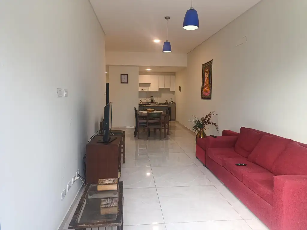 Living comedor amplio con salida directa al patio, integrado a una cocina moderna totalmente equipada.
