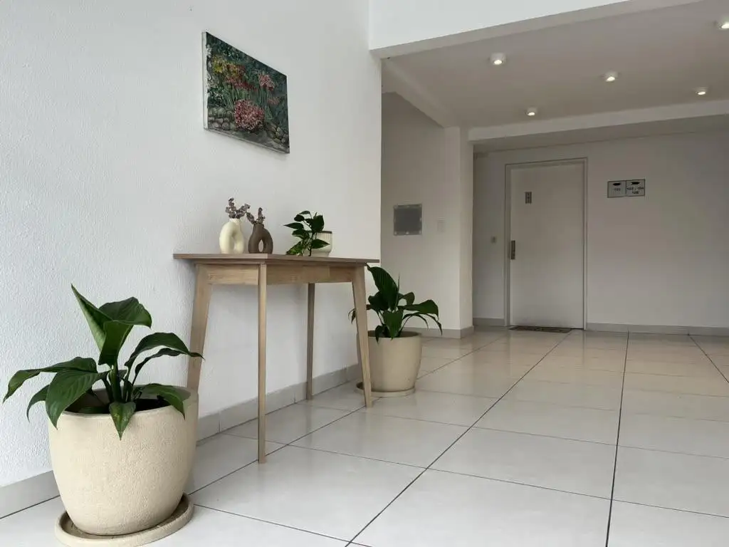 Living comedor con salida al balcón con parrilla, cocina integrada al living con lugar para lavarropas, alacenas bajas y altas, Dormitorio principal en suite con vestidor, un segundo dormitorio y otro baño completo que hace de toilette.