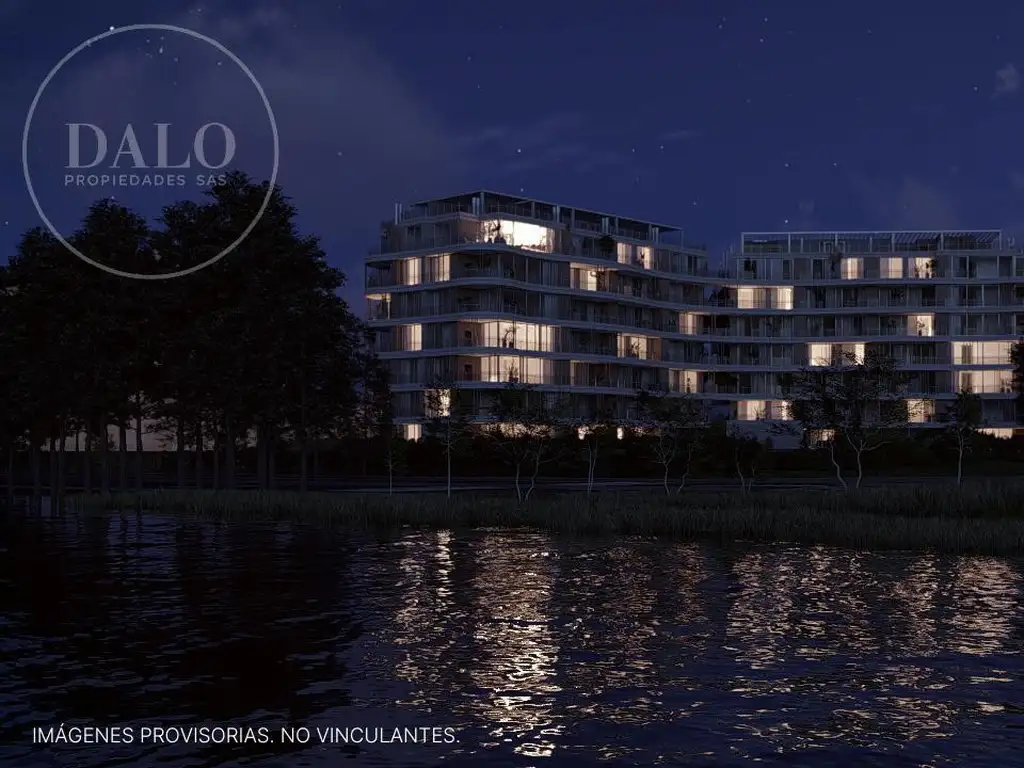 Son 80 departamentos de 1, 2 y 3 ambientes en diversas propuestas. Un diseño que abraza el paisaje con su forma orgánica generando amplias visuales al lago central, y al verde que lo rodea.
