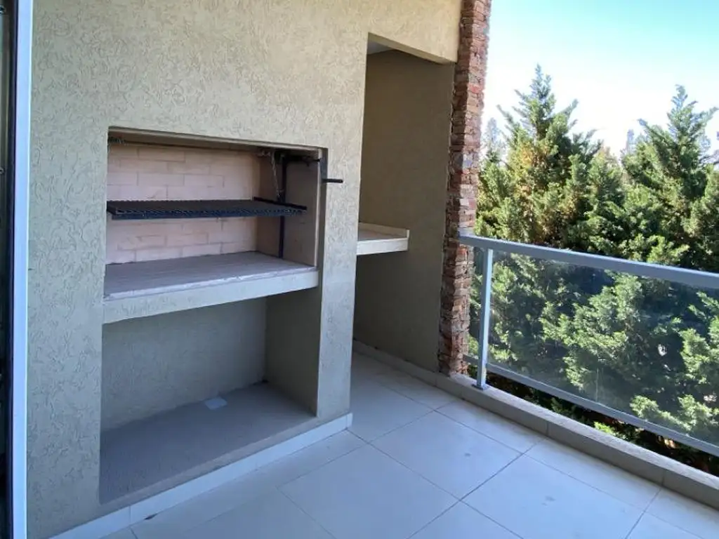 Hall de recepción, cocina comedor integrada, balcón con parrilla y vista a la troncal, dormitorio con placar completo y baño.