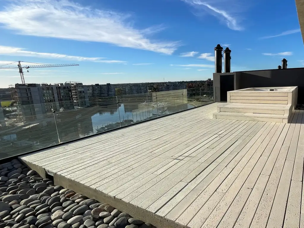 En el segundo piso posee una habitación de servicio, placard de grandes dimensiones y el acceso a la terraza de 100m2 con parrilla, piscina propia y una vista única a la bahía.
