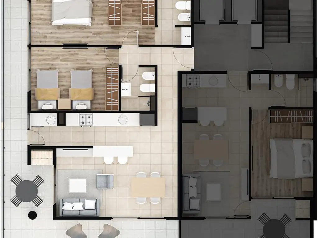 Departamentos de 2 dormitorios: 105,5 m2 exclusivos (incluye balcón de 30 m2).