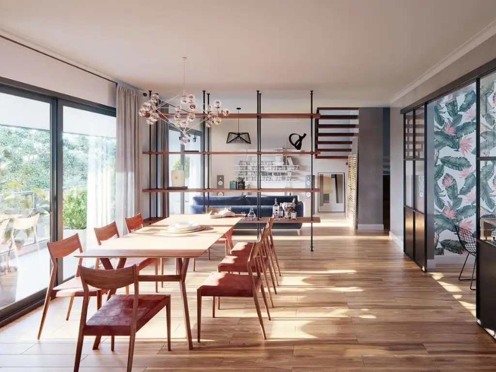 -Pisos: en Estar - Comedor - Dormitorio, Piso unificado porcelanato tipo entablonado madera.