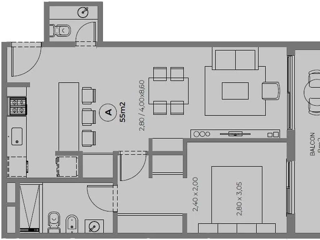 La unidad cuenta con 1 dormitorio en suite, living comedor con cocina integrada y toilette para visitas. Balcon de 6m2 lo que hace que sea muy luminoso. Cuenta con aire acondicionado frio/calor, y radiadores con regulacion individual. Baño y cocina completos, pisos de porcelanato y aberturas de aluminio DVH. Ascensores inteligentes, seguridad las 24 hs
