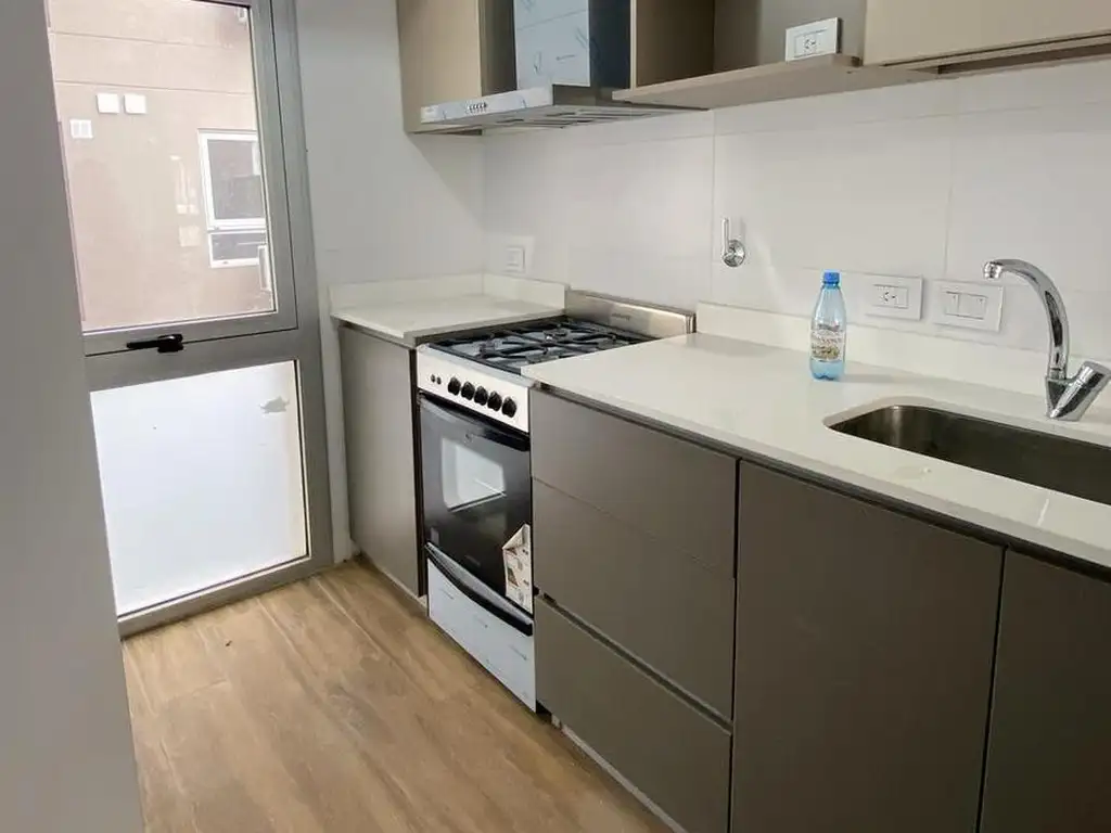 Cocina integrada al living comedor con muebles de cierre suave, extractor y cocina. Lugar para lavarropas.