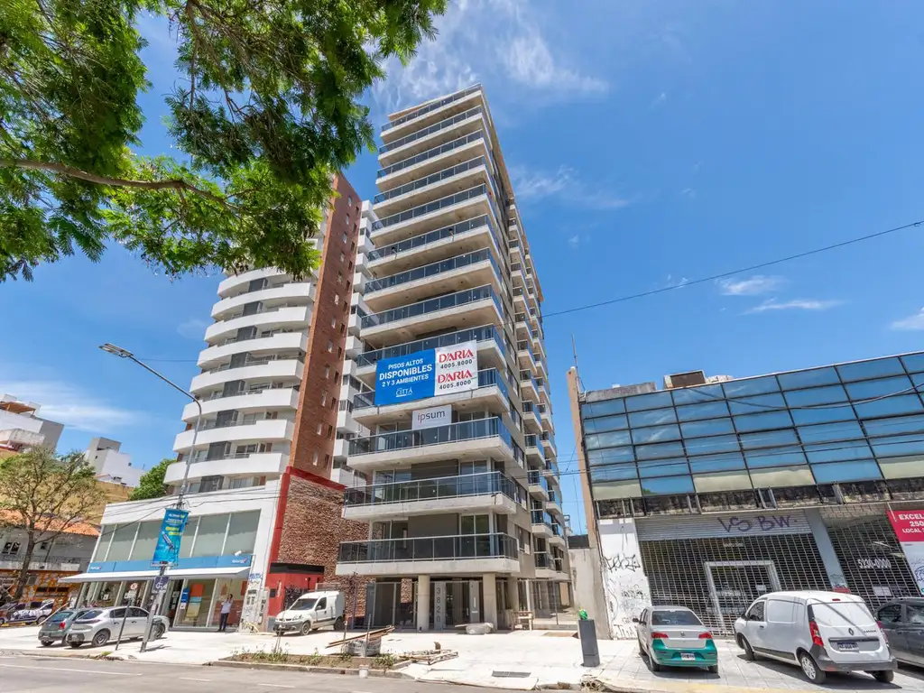 El edificio posee amenities en el último nivel del edificio, como SUM, piscina y solarium. Cocheras en Planta Baja, primer y segundo subsuelo, y bauleras.