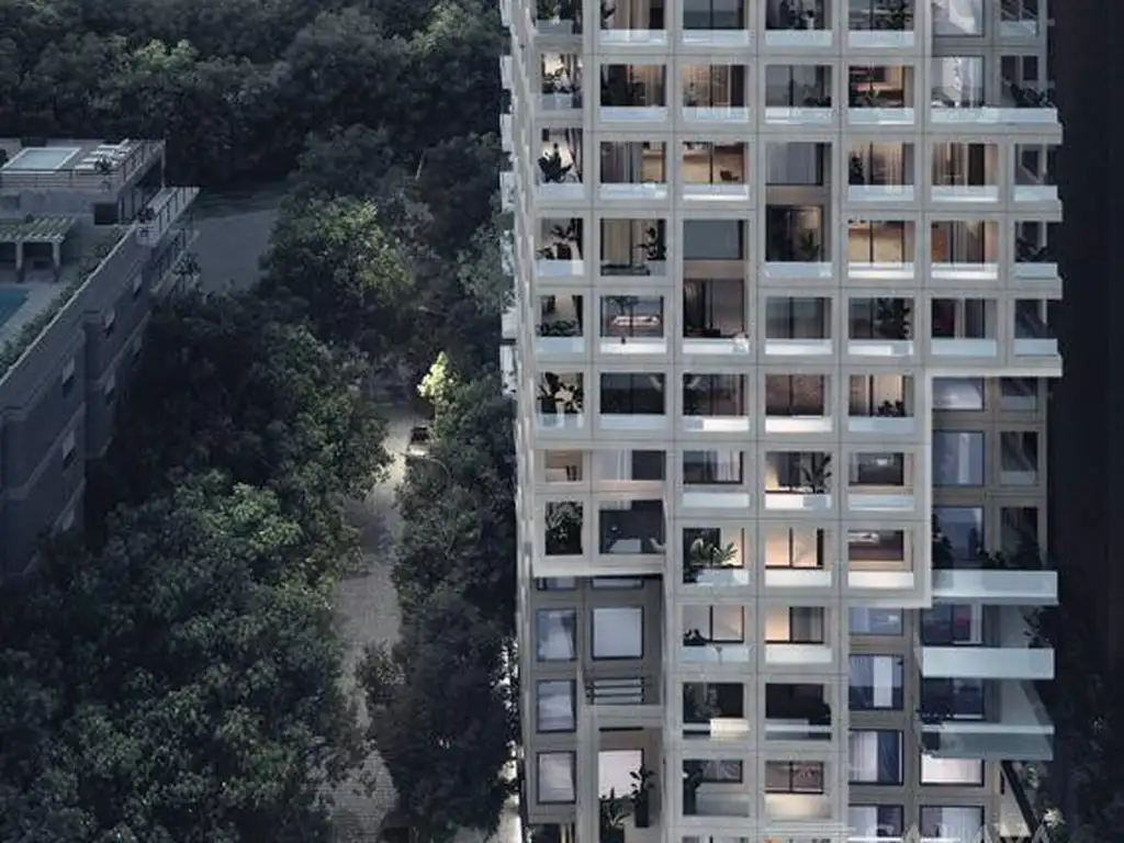 El proyecto de arquitectura del prestigioso estudio MSGSSV, conjuga líneas dinámicas de arquitectura, con una clara convivencia de visuales hacia los espacios verdes; con balcones terraza que va modificando el volumen de su disruptiva fachada.
