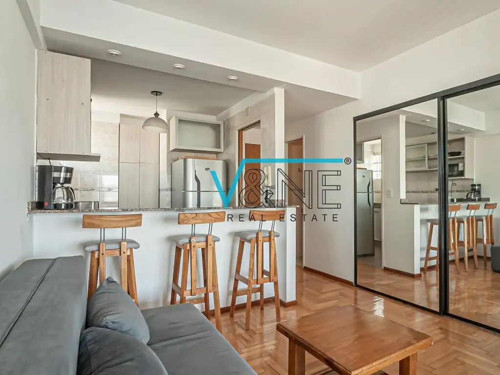 - Cocina con barra desayunador y ventana, conexión para lavarropas. Mobiliario a nuevo. Artefacto a gas.