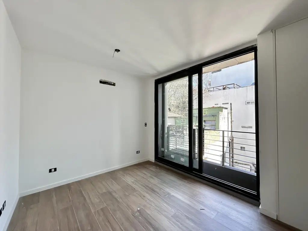 Luminoso monoambiente al contrafrente. Hall de entrada. Ambiente con salida a balcón al contrafrente. Cocina americana con anafe eléctrico de 2 hornallas en acero inoxidable, muebles completos e instalación eléctrica y espacio para microondas u horno eléctrico. Baño completo con bañera con mampara de vidrio.