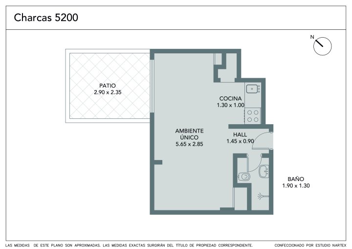 Ambiente único, cocina integrada y baño completo.