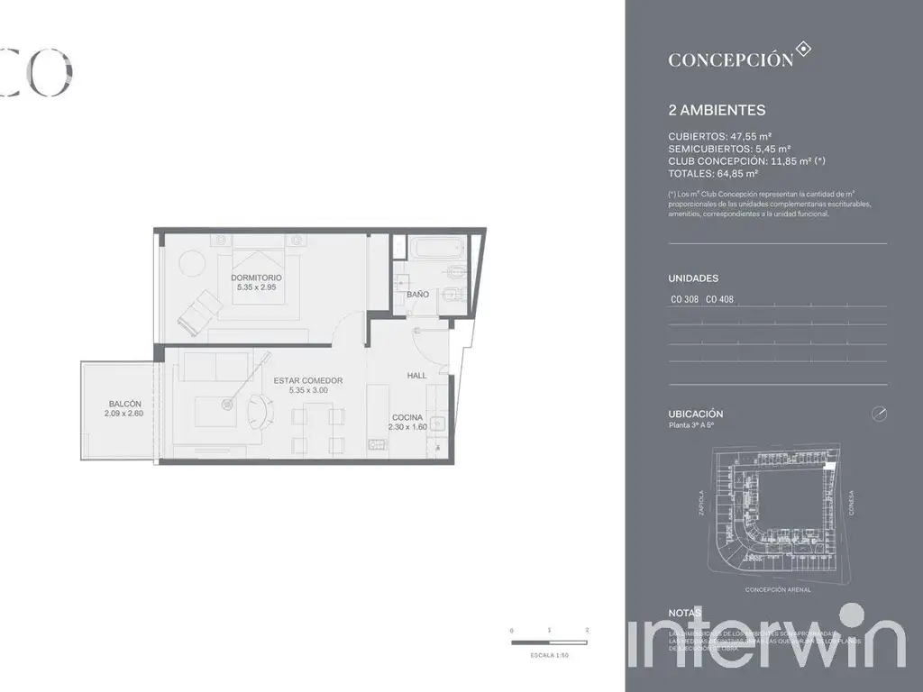 Los metros cuadrados totales incluyen muros y un porcentual de metros escriturables correspondientes al Club Concepción, que incluyen todas las amenities disponibles en el complejo cómo: Salón gourmet, Co-working, Solarium, Piscina, Resto Bar, Microcine, Sala de niños, Gimnasio, Spa y Sauna entre otros.