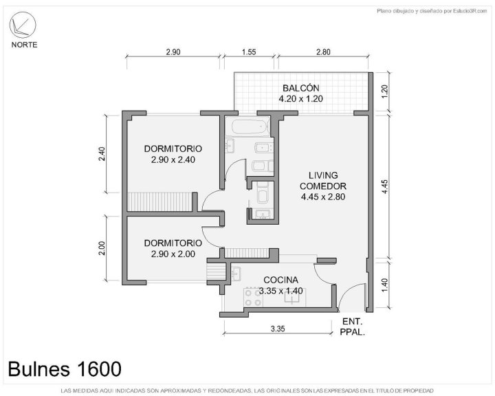 Superficie total : 50,95m². Cubiertos 46,22 m². Balcón 4,63m².