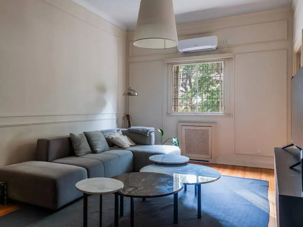 Las aberturas y carpinterías originales, junto con el piso de madera, añaden un toque de autenticidad y calidez al espacio.