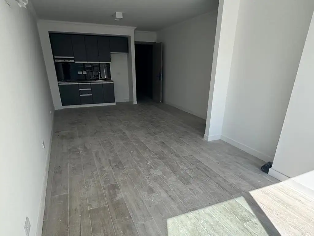 Living-comedor con cocina integrada, anafe eléctrico con y horno.