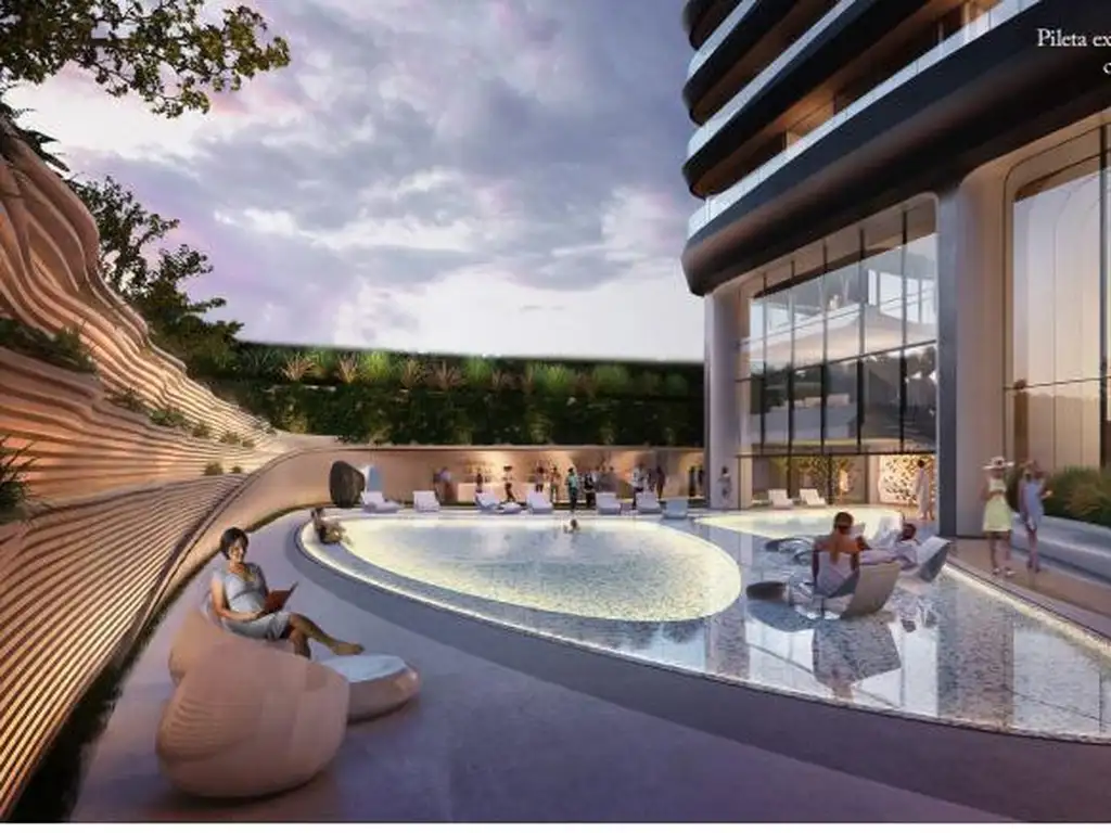 Amenities: Piscina in out en planta baja, parrilleros, juegos para chicos, entrepiso chef table, business center, terraza con deck y solarium en piso 37o, salón de fiesta para 150 personas.