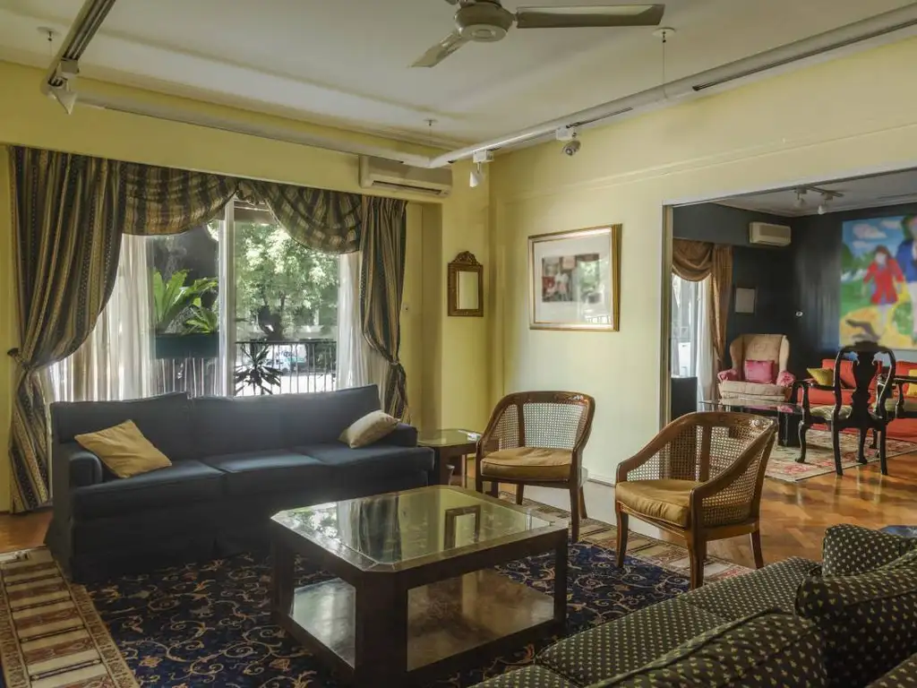 Tres dormitorios más al contrafrente (uno hoy es escritorio) con balcón con vista a un jardín del edificio en PB, toilette, playroom, comedor diario, cocina, amplio lavadero, dos cuartos de servicio y baño.