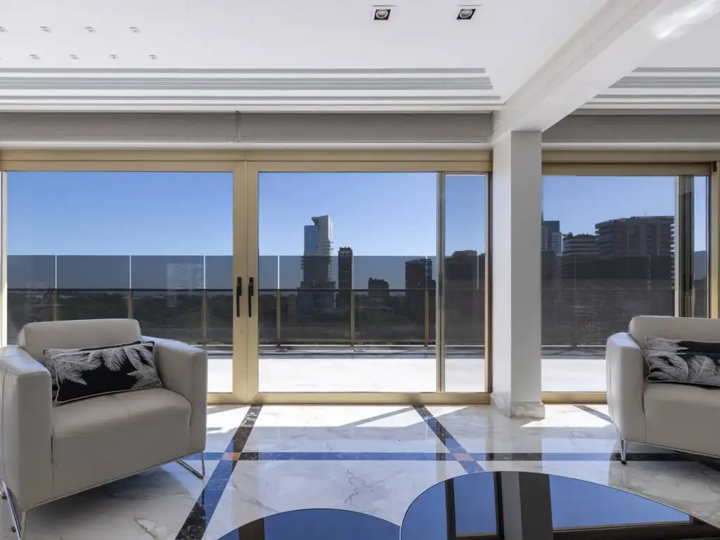 Living y comedor con salida a una amplia terraza al frente, con cerramientos doble vidrio, toldos y cortinas automatizadas. Toilette de recepción, amplia sala o estar con salida a segunda terraza, cuarto principal en suite y con vestidor, y dos cuartos más, uno de ellos en suite. Salón de sauna y jacuzzi. Cocina, lavadero y dependencias.