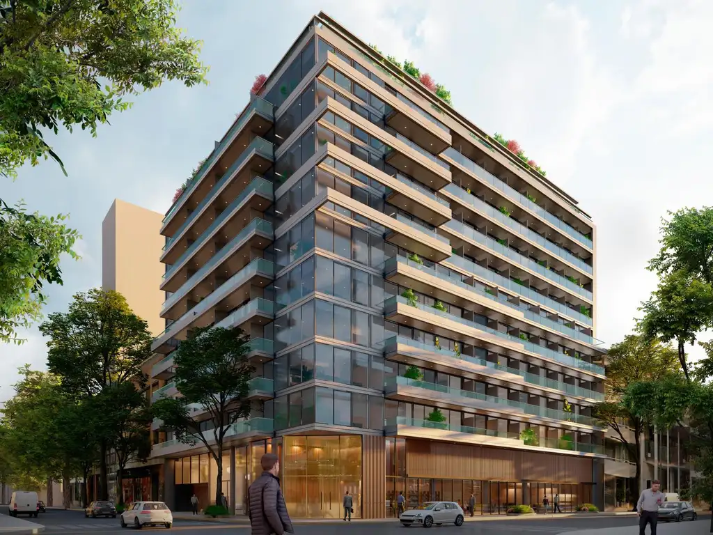 Emprendimiento de viviendas de primera categoría cuenta con 214 unidades funcionales distribuidas en 26 niveles. Cuenta con 3 niveles de subsuelos de cocheras. El ingreso al edificio será a través de una plaza (espacio verde), llegando a un amplio hall de ingreso de doble altura en Planta Baja y local comercial en esquina.